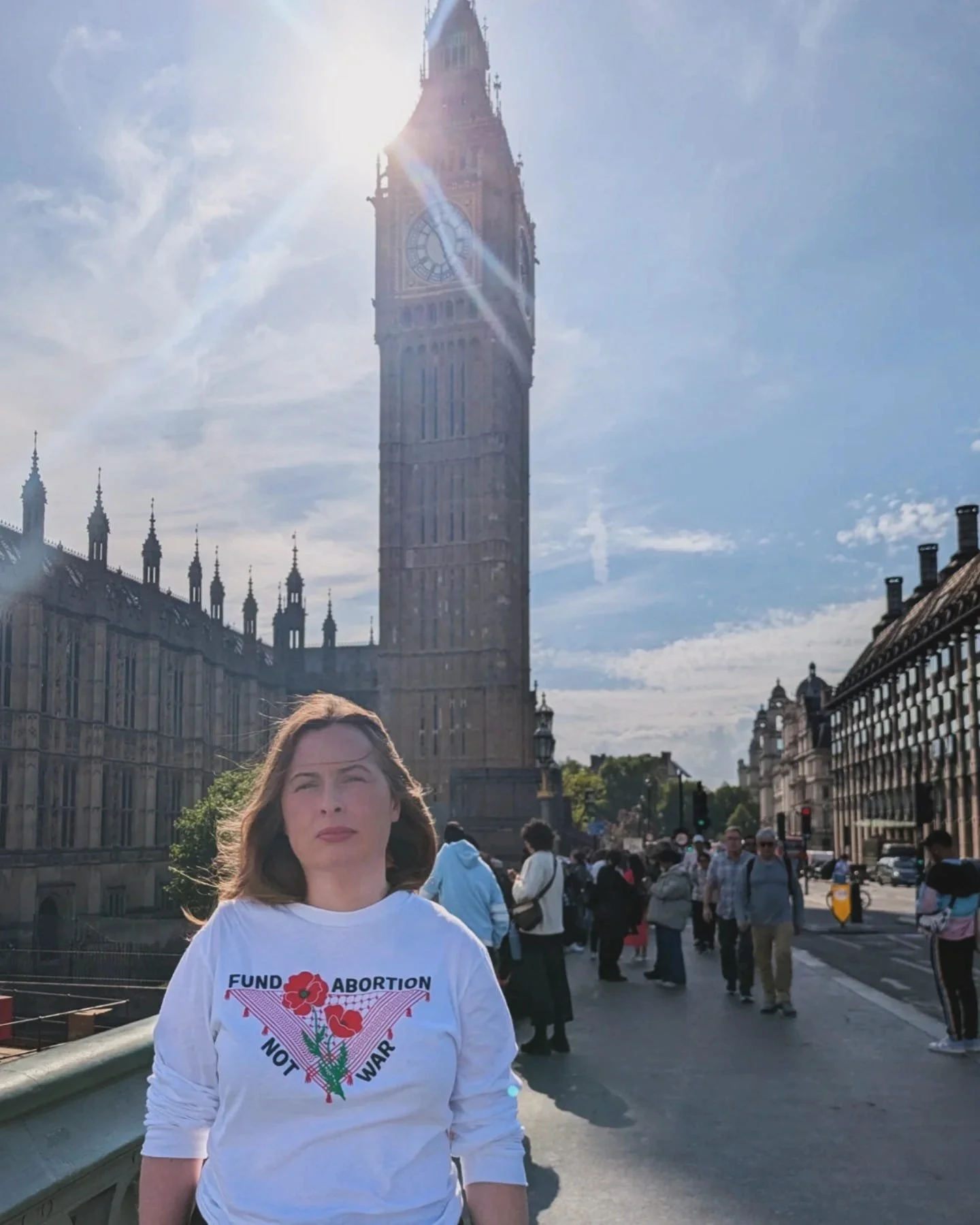 We raised all the issues we wanted to and are grateful for the solidarity received from people in the room. We are grateful to Amelia from SYA for sending us the t-shirts which support US abortion orgs who have been defunded due to their support of Palestine.