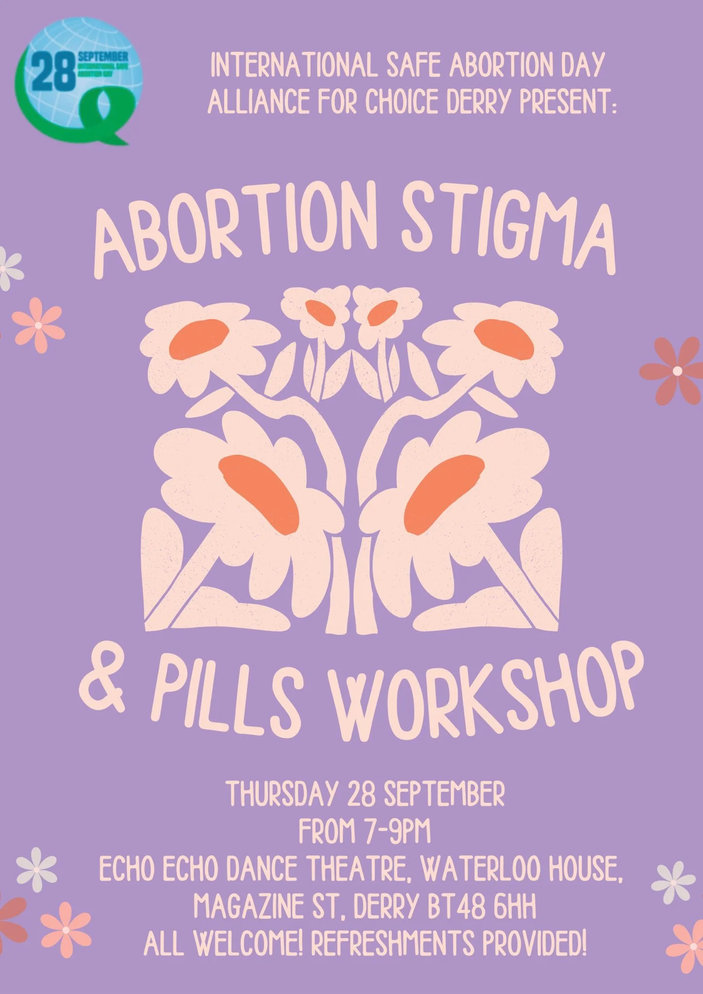 For International Safe Abortion Day, we are running two Abortion Stigma and Pills Workshops concurrently in Derry and Dublin! Come join us!!